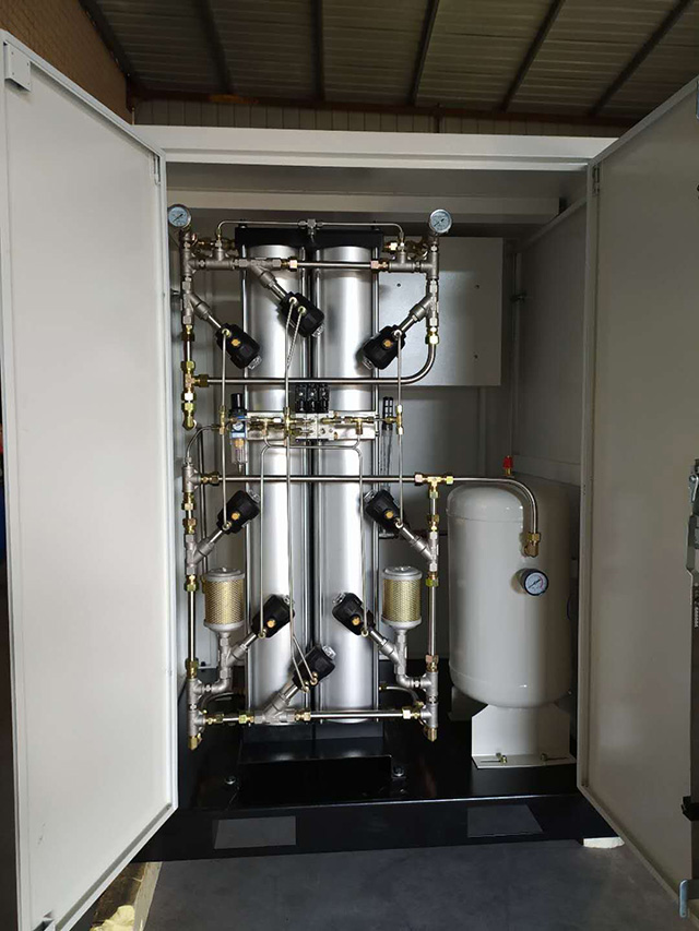2. 結構緊湊,占地少:PSA制氮設備設計緊湊,集成度高,能夠在較小的空間內完成整個制氮過程,這不僅減少了設備安裝所需的場地面積,也便于移動和維護,特別適合于空間有限或需要靈活布置的應用場景。